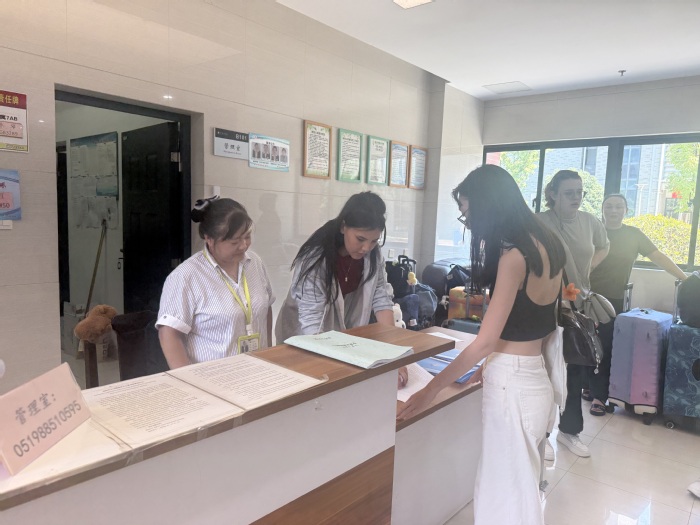 新生入校后,学院提供“全流程护航”:协调常州市出入境检验检疫局开通“留学生绿色通道”,安排大巴接送并配备辅导员、学生助理协助体检;通过专题说明会拆解居留许可政策,发放材料清单,辅导员一对一指导填表,简化繁琐手续。