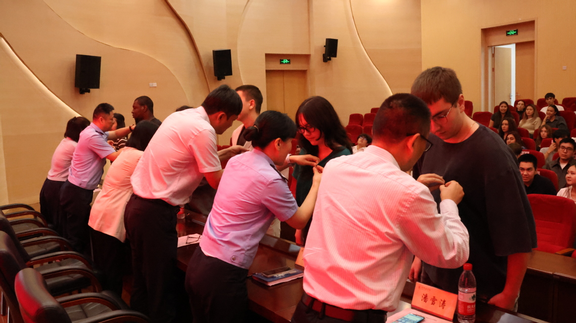典礼中,与会嘉宾还为新生代表佩戴校徽。