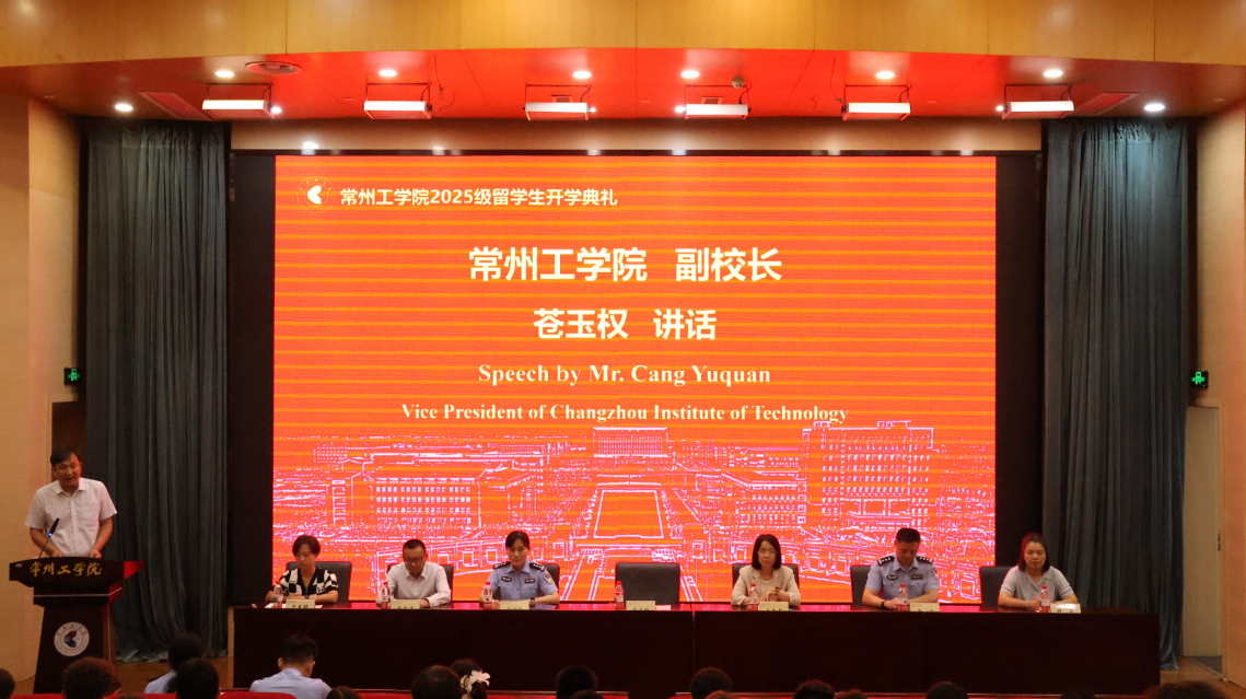 苍玉权在发言中向新生介绍了常州历史文化、学校办学历史与成果,并对新生提出三点希望:一是珍惜时光,深耕知识。学好专业知识,掌握过硬本领,主动了解中国的历史文化、社会发展,让在华留学经历成为拓宽视野、增长才干的宝贵财富。二是主动交流,拥抱多元。多参与校园文化活动,在交流中理解差异、尊重不同,在互鉴中收获友谊,成为中外文化交流的“小使者”。三是胸怀理想,担当责任。用自己的所学所思,为促进国际合作、推动世界和平与发展贡献力量。