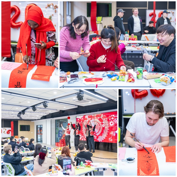 活动尾声,春节民俗体验区正式开放。写春联、剪纸、手工制作等传统项目吸引中外师生踊跃尝试。来自乌克兰的留学生金龙表示:“这是我第一次体验中国春节民俗,写春联特别有趣。马年的寓意很励志,我会把这幅字贴在宿舍门口。”
